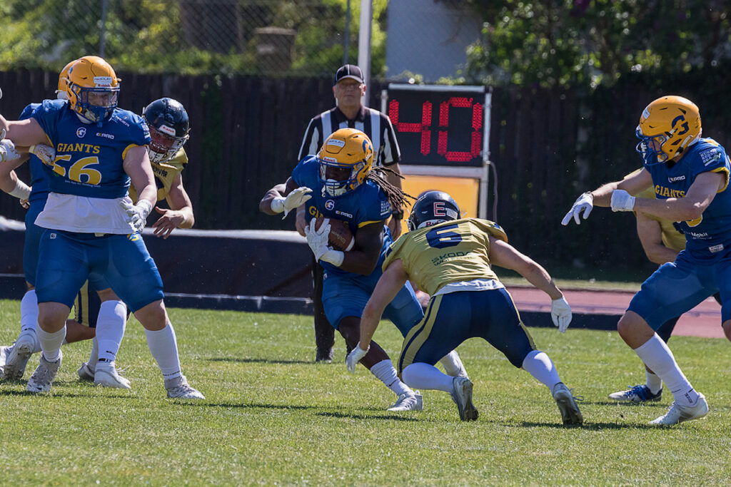 Nach zwei knappen Auswärtsniederlagen gewannen die Graz Giants auch ihr zweites Heimspiel, gegen die noch sieglosen Fehervar Enthroners gab es ein 31:8. Indes behielten die Speedfit Vienna Knights auch ijenseits von Ottakring ihre weiße Weste, die Salzburg Ducks mussten sich dem Aufsteiger 15:34 beugen. Und die AFC Vienna Vikings bleiben durch das 24:0 über die […]